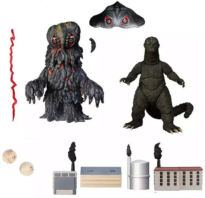 This monstrous boxed set contains Godzilla, Hedorah in both Final and Flying Form, display bases, and replica buildings to create multiple display options!