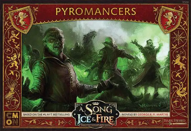 When in war, a Commander must take advantage of all of the technology at their disposal. Minor breakthroughs can provide a slight edge on thebattlefield, but when a discovery like Wildfire is made, its enough to turn the tide of a conflict.With the Pyromancers Unit Box for A Song of Ice and Fire: Tabletop Miniatures Game, Lannister Commanders will be able to take advantage of the substance, a volatile, green, liquid that sticks to armor and burns the flesh inside. It is a powerful tool on the battlefield, but wielding it can be dangerous, and mishandling it can be disastrous to their own troops. However, its worth the risks when they see the panic Wildfire can induce in the opposing forces. The Alchemist`s Guild is about to make its mark on the war.