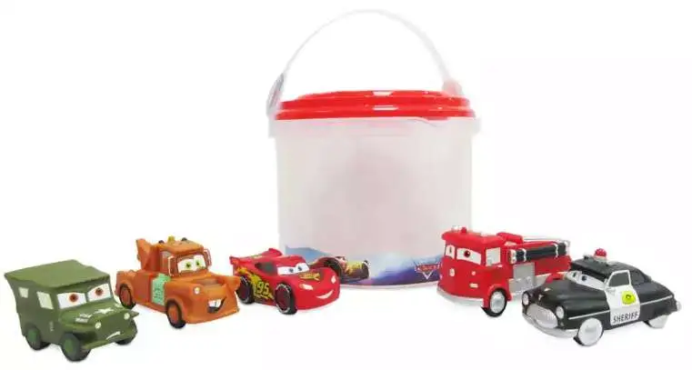 Fill ‘er up! Lightning McQueen, and a championship team of characters from Disney and Pixar’s Cars films will have your little speedster racing to take a bath with this fun set! Housed in a clear pail with a colorful strainer lid, it’ll pour on the excitement.
