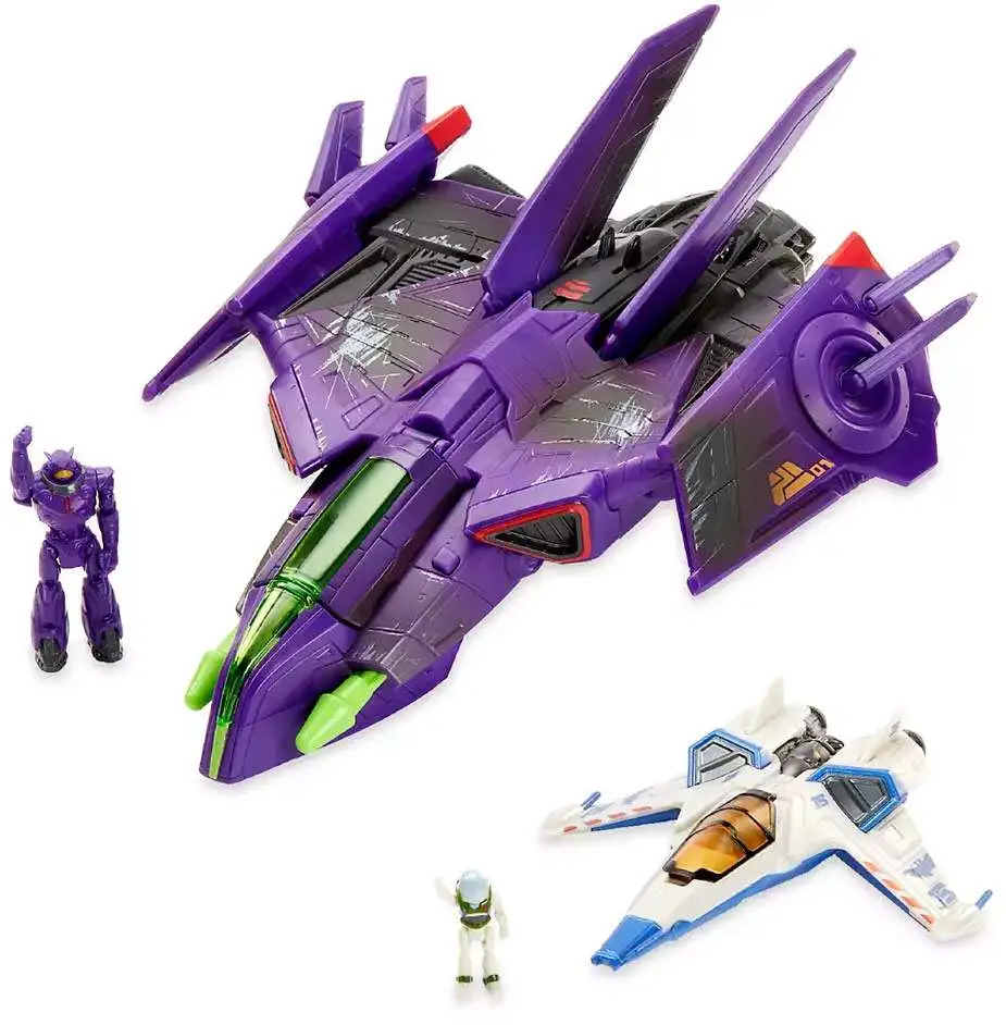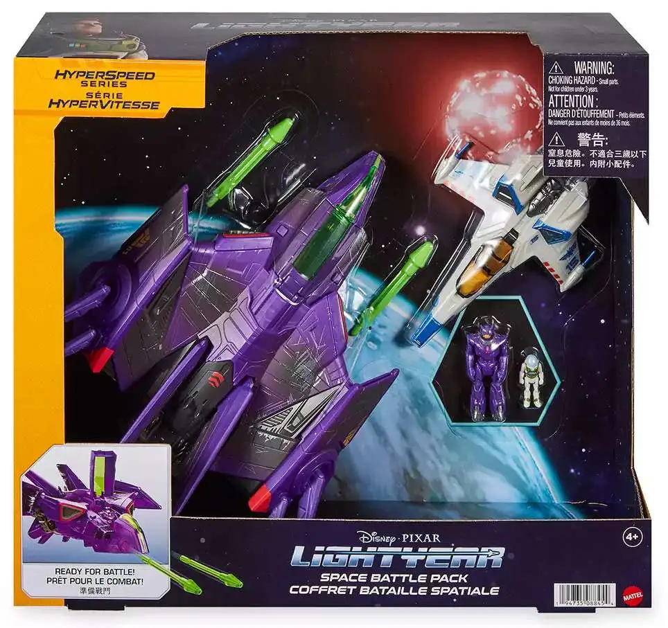 The Hyperspeed Series focuses on vehicles inspired by the high speed spacecraft featured in Disney and Pixar’s Lightyear. This two pack includes Zurg’s intimidating fighter ship with exclusive battle damage deco and Zurg figure, plus Buzz’s XL-15 Spaceship and Buzz figure.