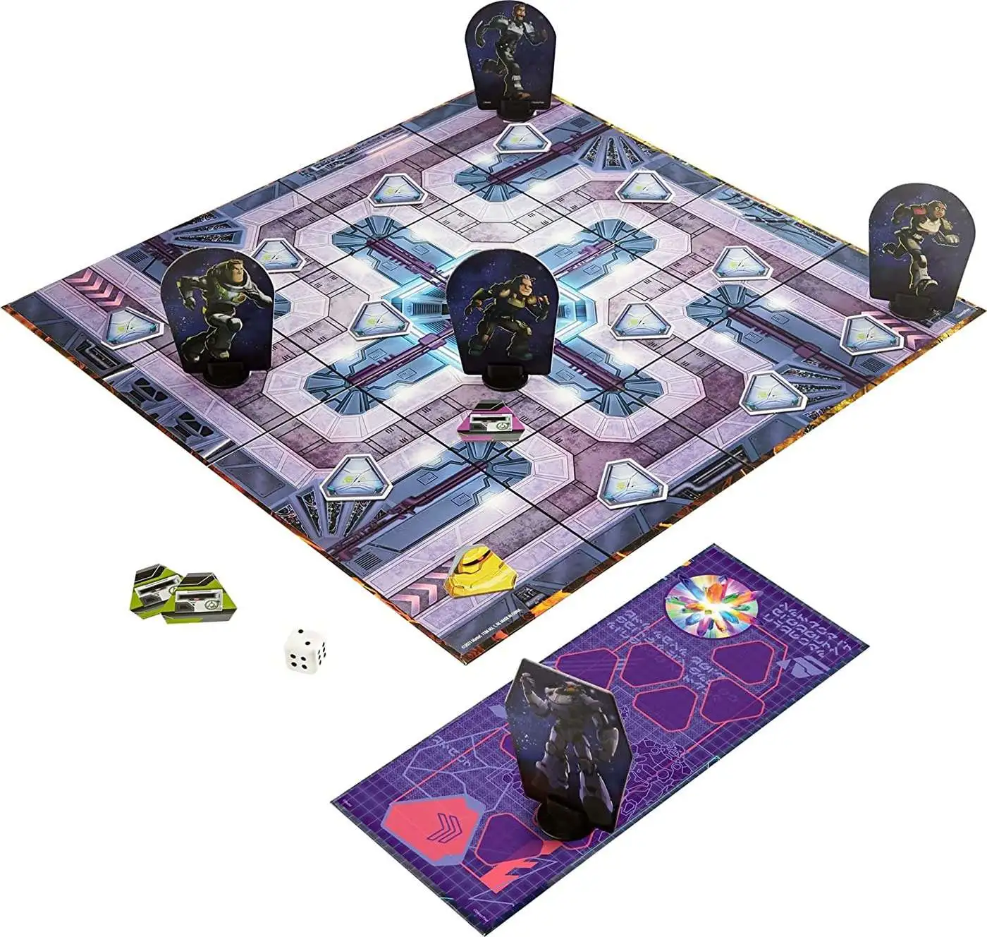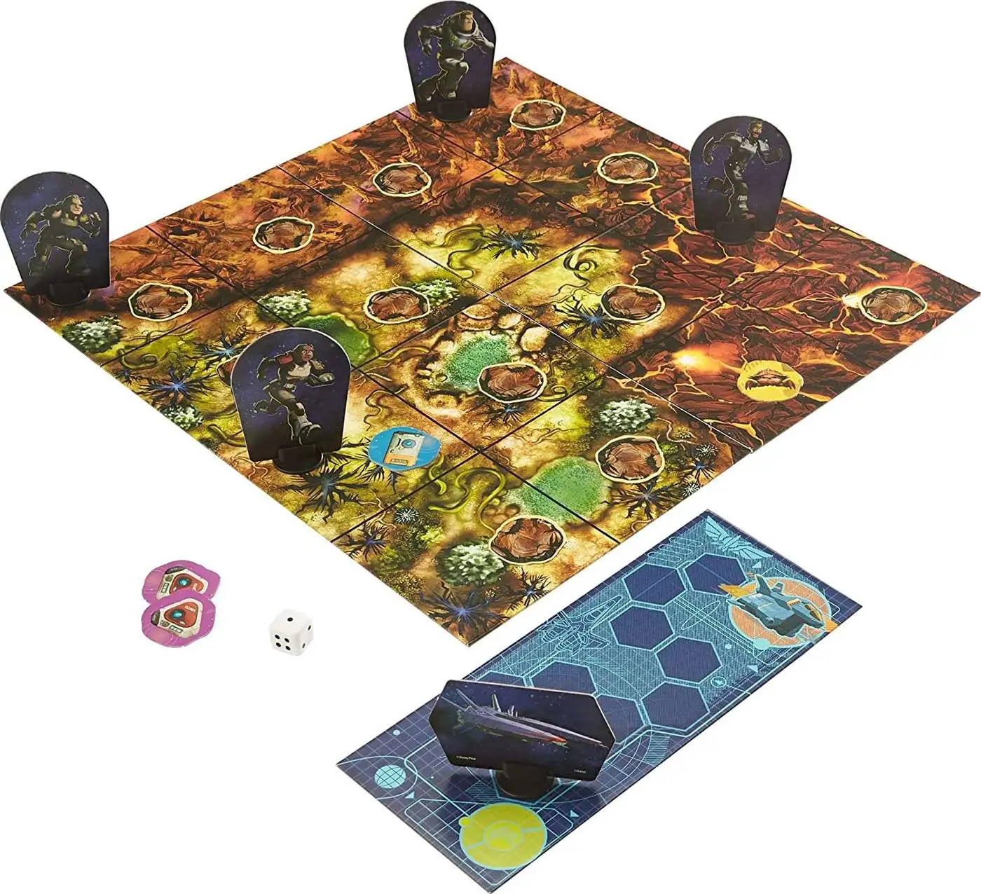 Discover Disney and Pixar’s Lightyear. Stranded on an uncharted planet, Buzz Lightyear and his crewmates will battle hostile plants, giant bugs and the ultimate threat, Zurg, to complete their mission and return home. In the exciting Seeker Squad board game, all players work as a TEAM in a race to find the Hyperspeed Crystals before Zurg strikes! Players cooperate to explore the board, leaving no stone unturned as they flip over pairs of tiles. If they match, take the tiles! If they don’t, Zurg moves closer and his robots send the whole world spinning! Escape before Zurg reaches the end of the Danger Tracker and ATTACKS! The first side of the board provides a simple way to play that’s perfect for Junior Patrols, and the second side delivers a more challenging experience for advanced Space Rangers. The game encourages cooperative play for 2 to 4 players, ages 7 years and older. Colors and decorations may vary.