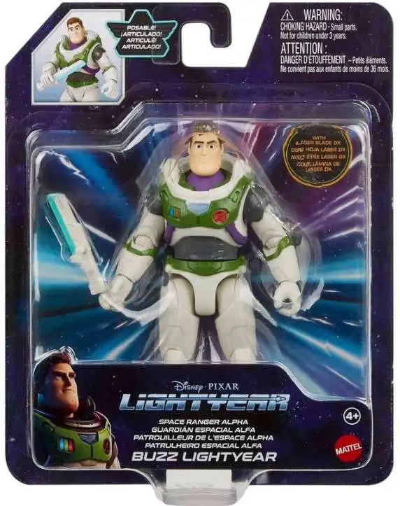 Discover Disney Pixar’s Lightyear. Stranded on an uncharted planet, Buzz Lightyear and his crewmates will need to battle hostile plants, giant bugs and the ultimate threat, Zurg, to complete their mission and return home. This high-quality, posable action figure of Buzz Lightyear in his Space Ranger Alpha Suit will inspire creative space ranger play or a spectacular display. At 5 inches tall, this movie-authentic detailed figure has 12 movable joints to recreate all his signature poses. He comes with a Laser Blade DX accessory that snaps in its hand and on his back, to help him fight through the vines of a hostile planet. Other characters and vehicles are also available at this scale, so fans can recreate the excitement of battle, flight and exploration and create dramatic Lightyear displays.
