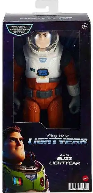 This large action figure of Buzz Lightyear in his orange XL-15 flight suit represents Buzz in one of his hyperspeed flight attempts. At 11.5 inches tall, this high quality authentic toy has 14 movable joints for deluxe posability to recreate signature movie action. At this larger size, the figure is ideal for small hands so kids have a BIG opportunity to recreate the excitement of battles, flights and exploration. Fans will want to collect all the large scale Lightyear figures to relive the entire thrilling space saga! Each figure sold separately, subject to availability. Colors, dimensions and decorations may vary.”