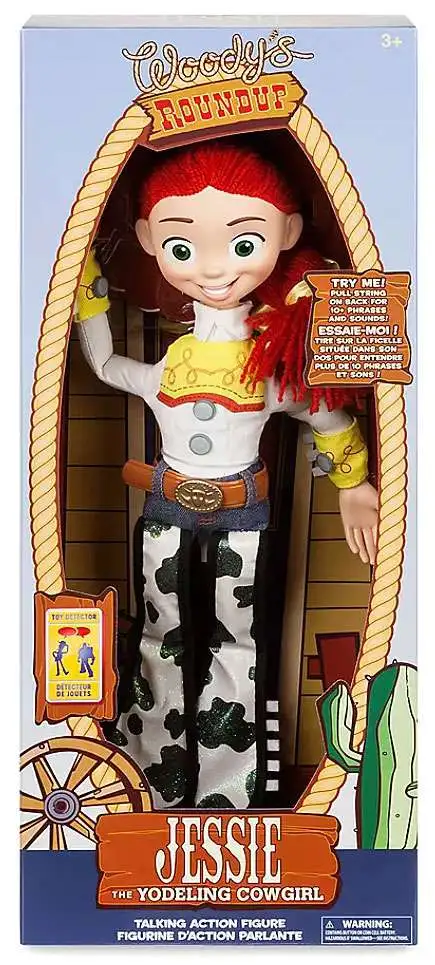 Pull string to hear nine phrases including ”Don’t worry, Jessie never gives up,” and ”This here cowgirl always finds a way”