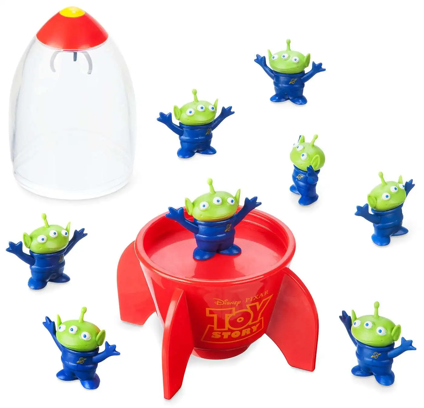 Eight Space Aliens find themselves in the clutches of the claw with this Toy Story eraser set. The figural erasers come in a rocket ship container inspired by the claw game at the Pizza Planet restaurant.