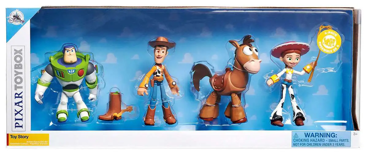 Set includes Woody, Buzz Lightyear, Jessie, and Bullseye