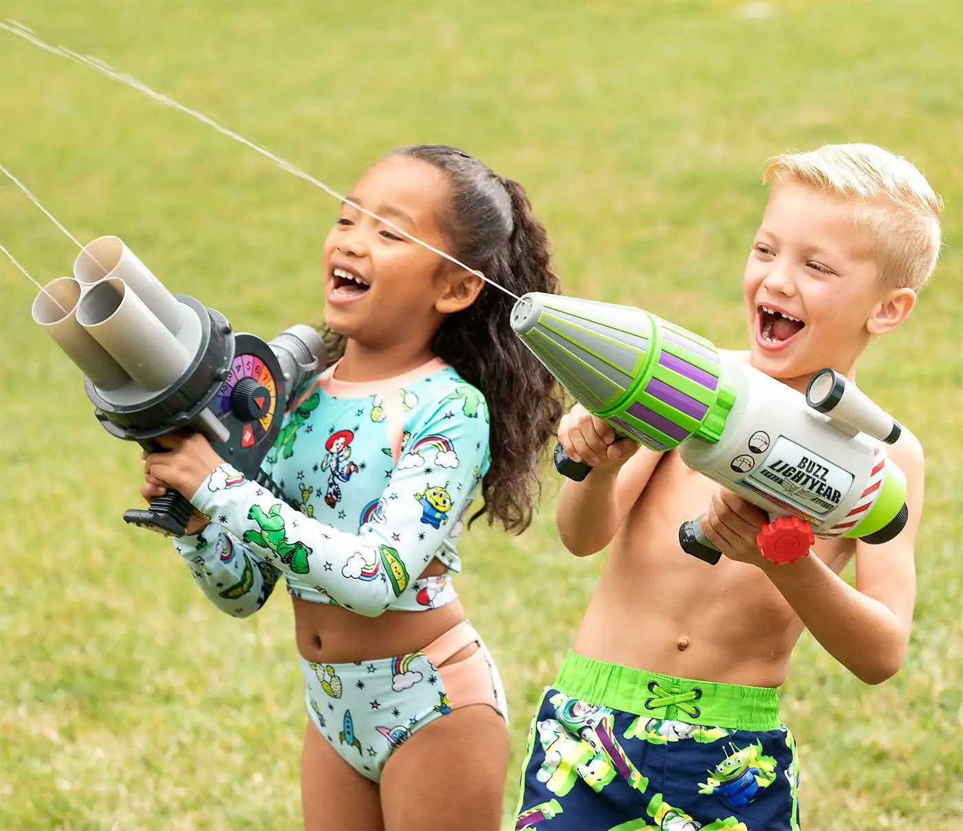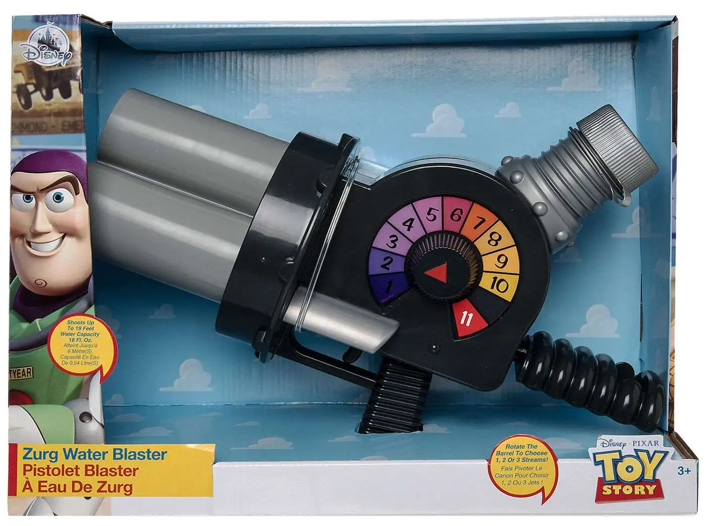 Enter into a sinister alliance with evil Emperor Zurg as he battles his archenemy Buzz Lightyear for control of the universe with this tri-barrel water blaster. Turn the barrel to go from one, to two, to three streams of water!