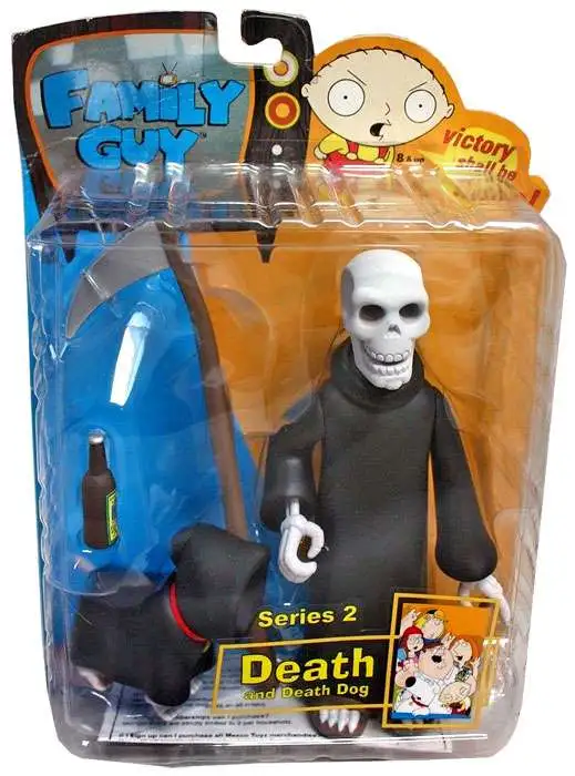 This is the MEGA Rare Death Variant that is found randomly inserted in cases of Family Guy. This Death figure features a “Skull” head rather than the standard “Hooded” head.
