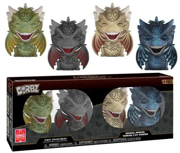 The dragons from Game of Thrones are a shared 2018 San Diego Comic Convention Exclusive vinyl Dorbz four pack.