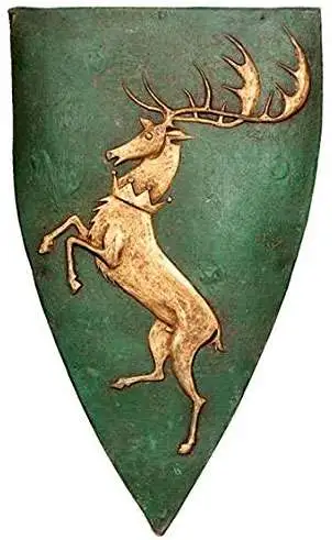 Renly Baratheon, Lord of Storms End, contests for the Iron Throne with his brother Stannis. For his personal sigil, Renly altered the baratheon stag to a golden crowned stag on a field of green.