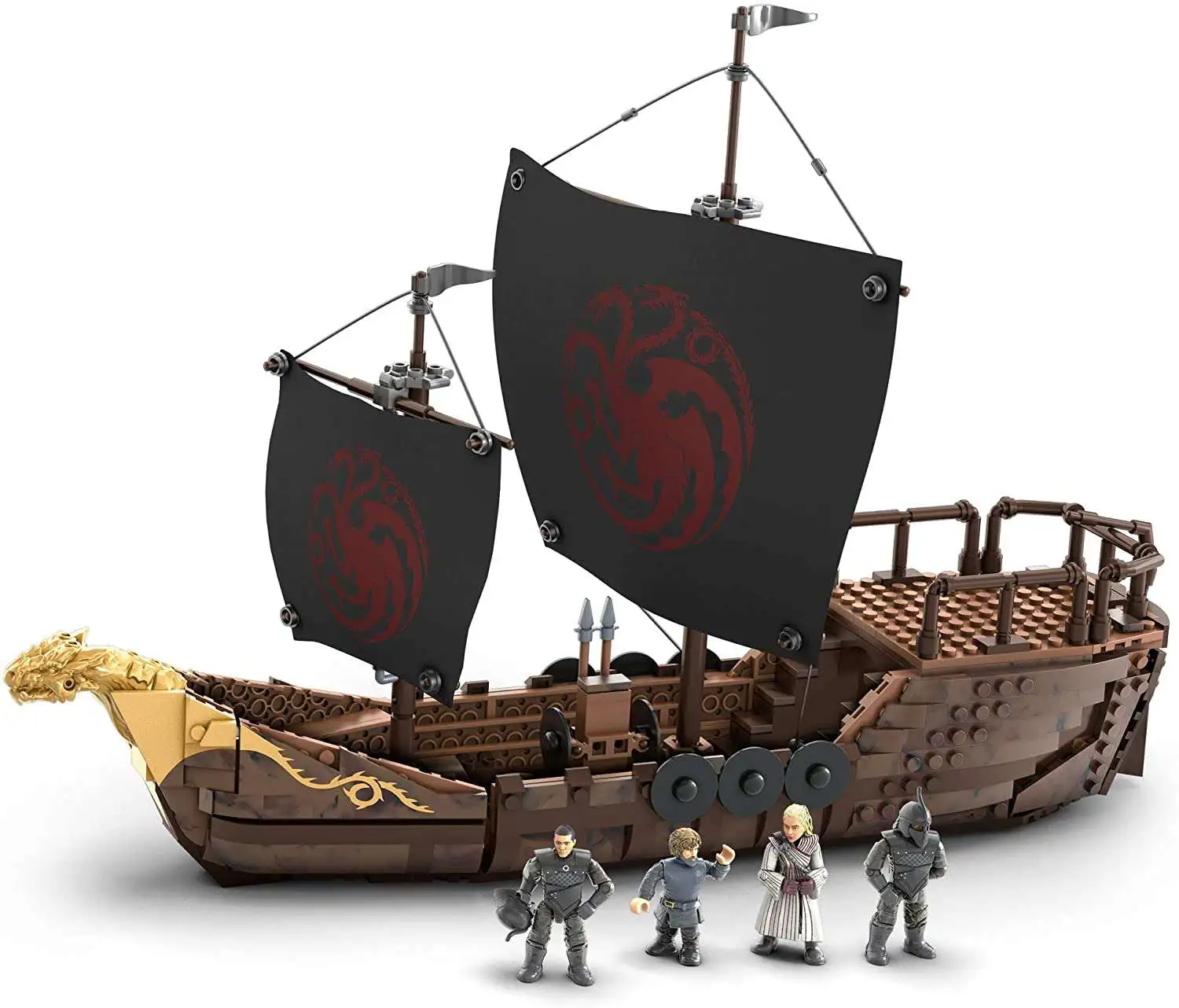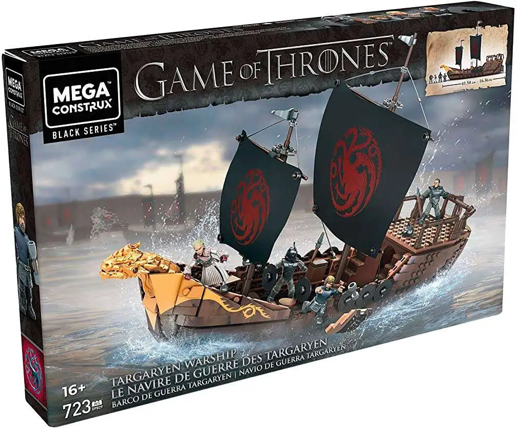 Help Daenerys on her journey towards taking the Iron Throne by building the imposing Targaryen Warship!Its been a long and arduous journey full of sacrifice for The Mother of Dragons but now she finds herself at sea within reach of conquest. Build this legendary warship and cut though the oceans with its unique crew of misfits aboard. Use the real printed fabric sail with rigging to change course or just to look threatening, and keep an eye on what’s happening below deck by removing the top! Ideal for Mega Construx Black Series collectors, ages 16 and up.