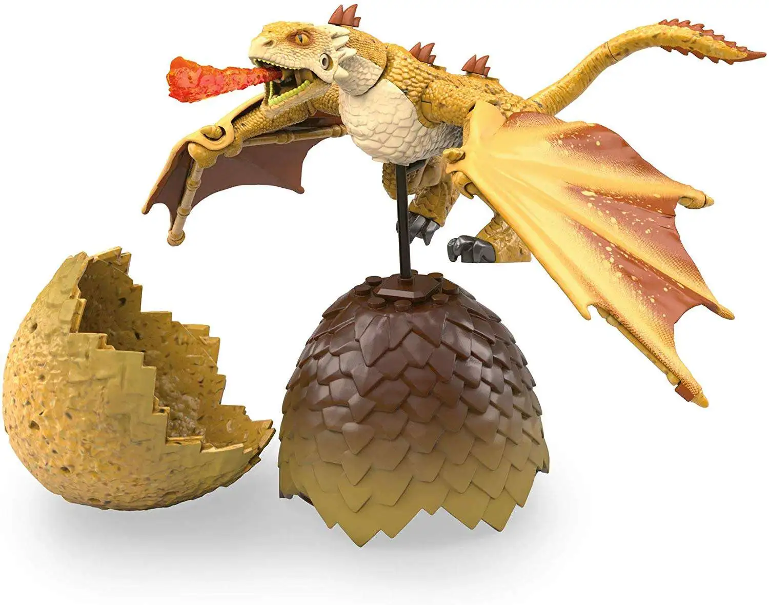 Breathe fire on the battlefield and conquer the 7 kingdoms with Viserion! Named after the brother of Daenerys, Viserys Targaryen, Viserion possesses awesome and devastating power. Remove the pieces from its resealable egg and bring magic back to Westeros by building this tan dragon with gold markings and red-orange wings. Then prepare to conquer the 7 kingdoms with one of the most powerful allies in all of the land! Ideal for Mega Construx Black Series collectors, ages 16 and up.