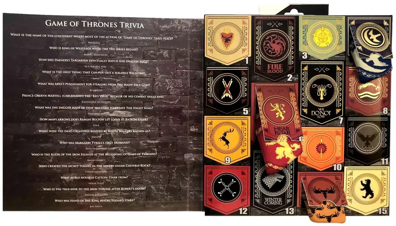 This Game of Thrones 15 Days of Socks Advent Calendar is the perfect pick for giving a pre-Christmas gift to someone who loves the epic tales of Westeros, or just to get yourself a little treat. It’s just like the classic 12 days of socks, with three bonus pairs for added fun. It features 11 pairs of low-cut socks and four crew-cut pairs with a variety of different house sigils and other Westeros-inspired designs. They come packaged in a box that makes it easy to reveal each pair on the corresponding day, and it also has fun trivia questions printed on one of the sides to put someone’s fandom knowledge to the test.