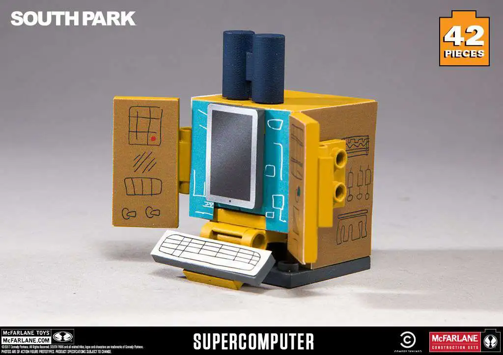 Buildable “supercomputer” micro set inspired by the South Park television series. Construction set features a buildable “The Human Kite” Kyle figure and comes with scaled supercomputer based off authentic scenery from the “South Park: The Fractured But Whole” video game.