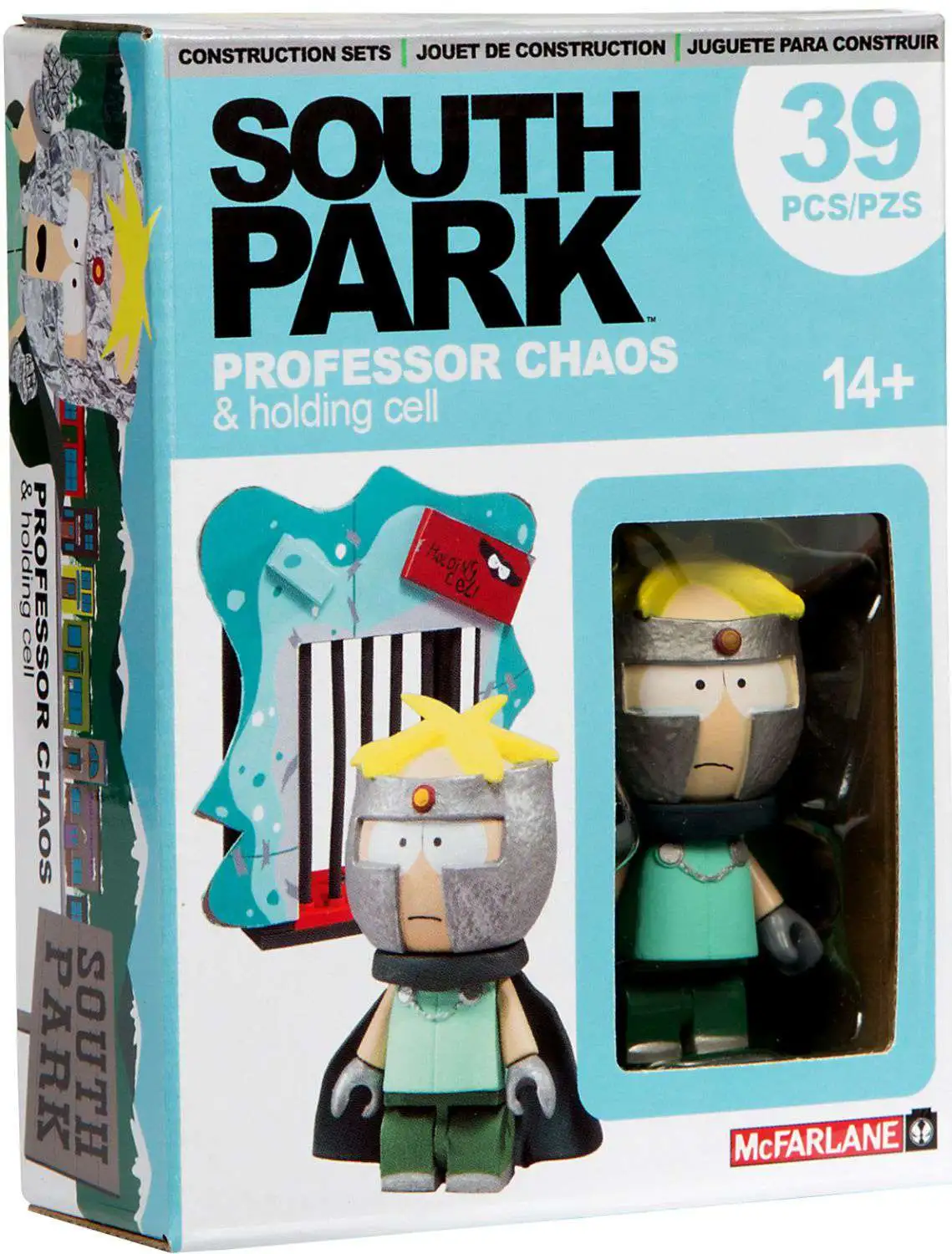 Buildable “holding cell” micro set inspired by the South Park television series. Construction set features a buildable “Professor Chaos” Butters figure and comes with scaledHolding cell setting based off authentic scenery from the “South Park: Fractured But Whole” video game