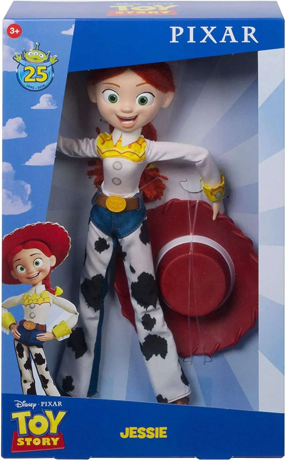 Enjoy tons of Disney and Pixar Toy Story adventure and fashion play with Jessie! The fan favorite yodeling cowgirl wears her cow-print jeans, signature hat, boots and western belt and has bright red yarn locks fastened with a hair tie. Recreate a variety of looks and movie moments with the girl hero who ultimately becomes the new Sheriff! Expand your story and fashion play and also choose our Bo Peep doll.