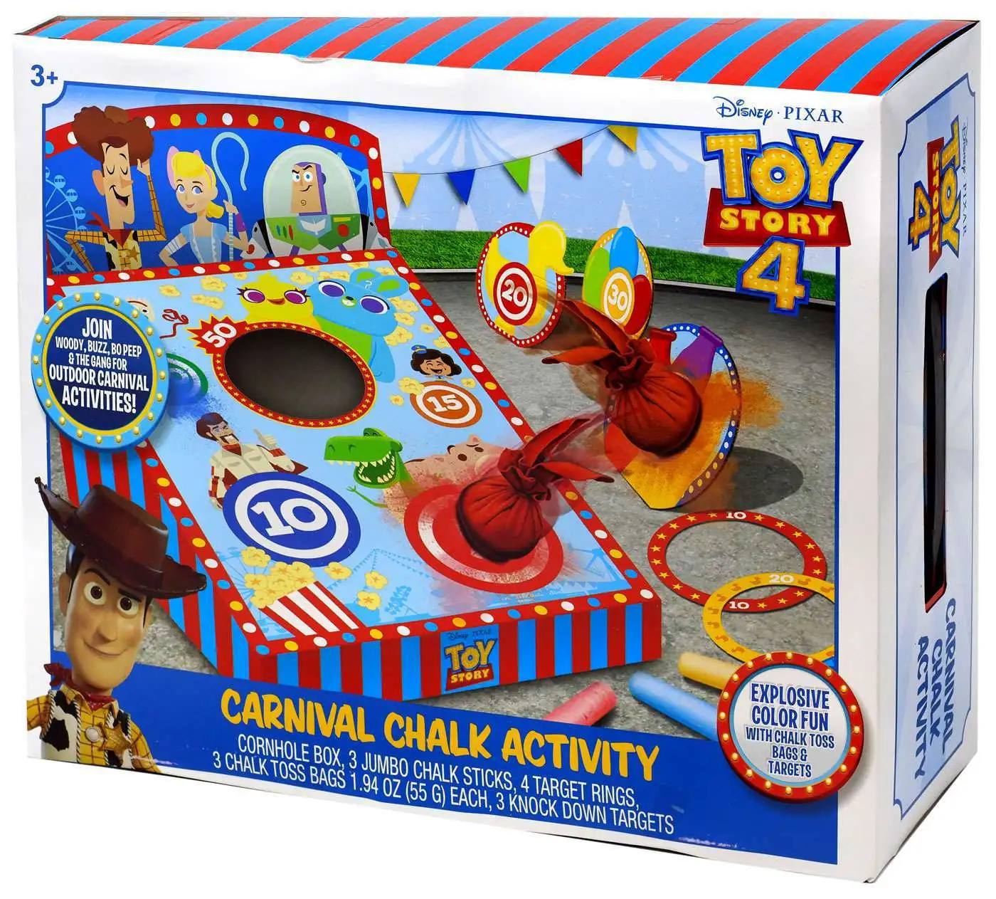 Includes: Cornhole Box, 3 Jumbo Chalk Sticks, 4 Target Rings, 3 Chalk Toss Bags & 3 Knock Down Targets.