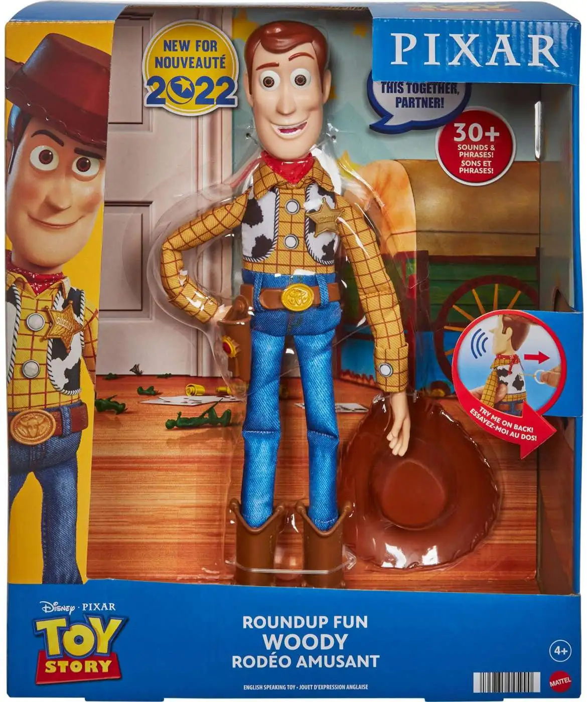 Yes sir, time to round us up an adventure! This Roundup Fun Woody 12 inch figure will bring big realistic thrills to fans of the friendly sheriff from Disney and Pixar’s Toy Story movies. With 30+ phrases activated by the pull-tab on his back, fans young and old can discover huge interactive fun. A sheriff always needs his deputy! His truly movie-authentic look is achieved with multiple materials to really bring the character to life, including a soft rag doll body, iconic western shirt, jeans and vest, produced in fabric, and head, hat, boots, belt and hands made of plastic. Kids can relive all their favorite Woody scenes from the movie series, with the phrases coming directly from this talking Woody figure. Like Andy, they’ll want to take him everywhere! Colors, dimensions and decorations may vary.